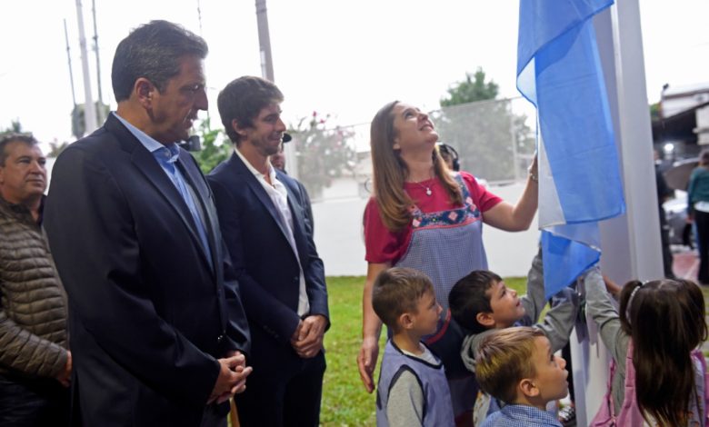 El presidente de la Cámara de Diputados de la Nación, Sergio Massa participó este miércoles de la inauguración de un jardín de infantes en el municipio de San Fenando, junto al intendente local, Juan Andreotti.