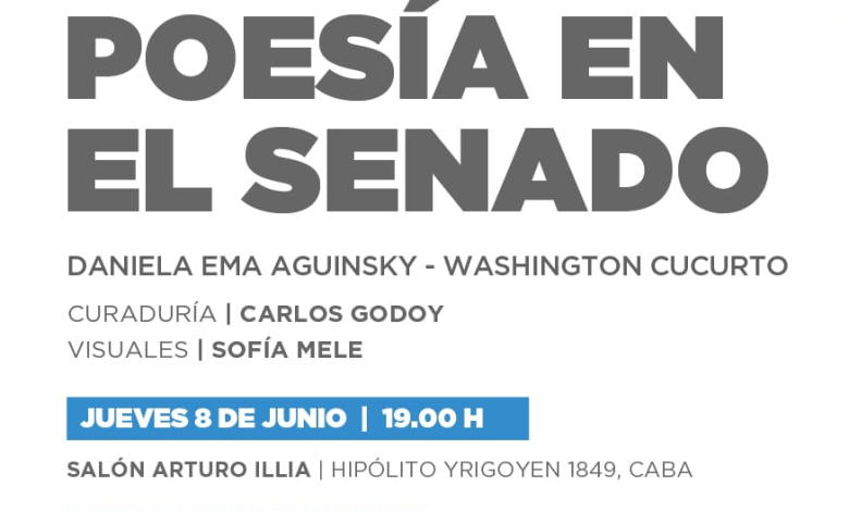 “Poesía en el Senado” está a cargo del escritor Carlos Godoy. En esta oportunidad participarán de la lectura, el poeta, Washington Cucurto y la poeta Daniela Ema Aguinsky. En paralelo y en forma espontánea, Sofía Mele proyectará imágenes y diseños artísticos que acompañarán los textos.